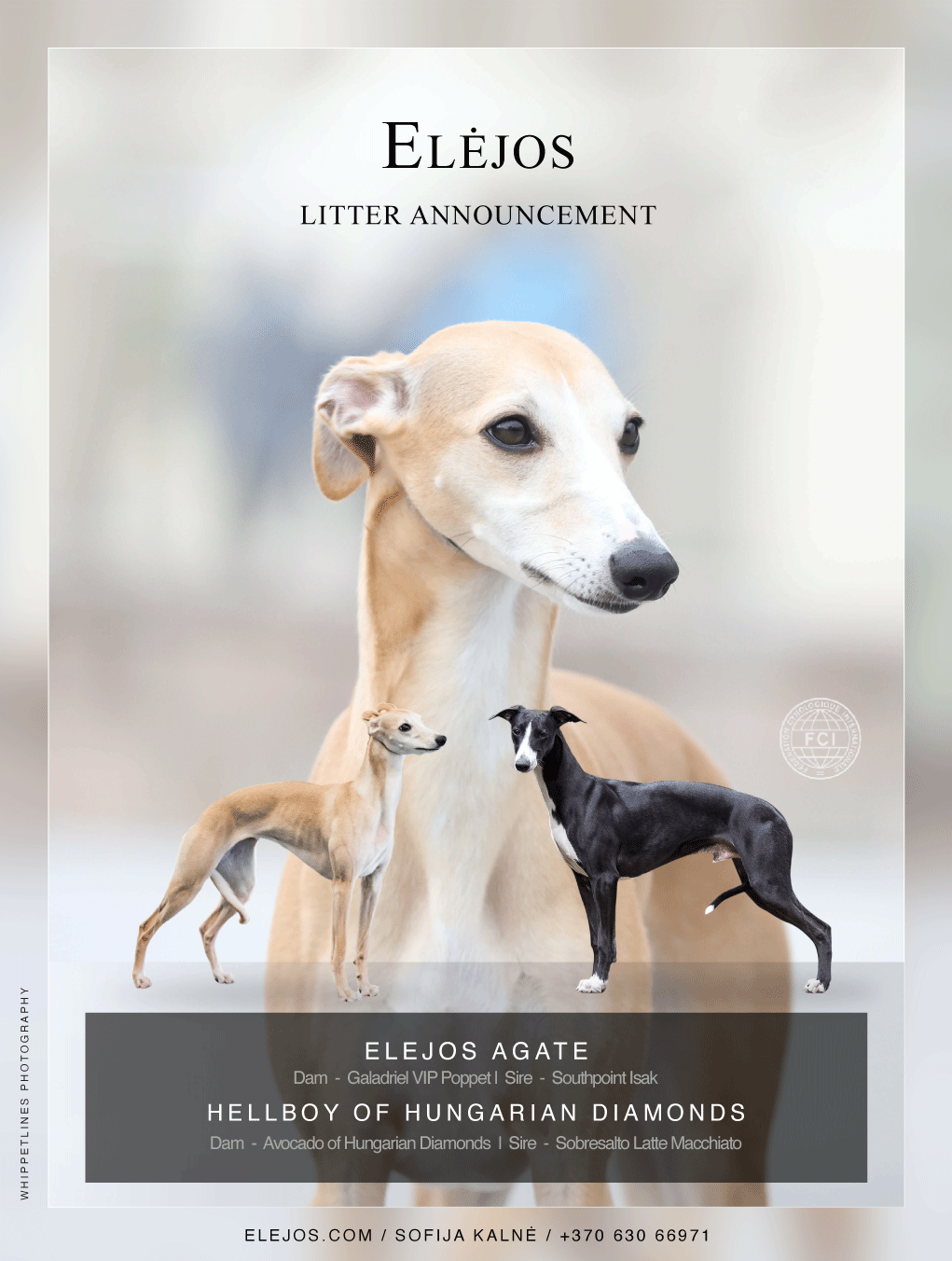 Exciting news! A Whippet litter is expected in 2025, and we couldn’t be more thrilled. The mother, Lėja – Galadriel VIP Poppet, comes from the Czech Republic and boasts impressive accolades, including Lithuanian Junior Winner and champion titles in Lithuania, Latvia, Estonia, and the Baltic States. Moreover, Lėja consistently excels in specialized sighthound and Whippet shows, earning high praise. Her personality is a perfect mix of obedience and independence, which makes her deeply loving toward people. Additionally, she adapts seamlessly to staying home alone, traveling, and forming strong bonds with children. On top of that, both parents will undergo thorough genetic, heart, and eye examinations to ensure the healthiest puppies possible. If you’re interested, we warmly invite you to join us for a seaside walk to meet the family!